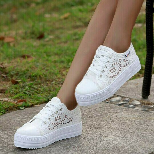 Closure Type: Lace-Up; Fashion Element: Sewing; Heel Height: Med (3cm-5cm); Upper Material: Mesh (Air mesh); Lining Material: None; Insole Material: Rubber; Closure Type: Lace-Up; Shoe Width: Medium(B,M); Color: as the picture show; Feature: Breathable, Height Increasing,lace,Leaked. Flaunting a pretty lace design, these breathable platform shoes for women offer the best of comfort, convenience and style. Crafted with air mesh material, these attractive white sneakers have rubber soles that give a good grip. Displaying a solid pattern, these height increasing shoes come with a lace-up closure. The perfect way to stay fresh this season, grab these ultra-modern shoes today and step out with confidence!